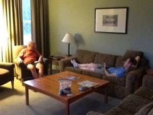 The following day, we planned to go out to Poway to work on the house. I ran the shorter route that morning, the five mile loop around Balboa Park, which still includes the canyon for a steep descent and climb, ever thinking of the Steamtown profile. Again, my pace was around 8:55, still feeling sore quads from the day before. We drove up to Poway, and spent about five hours on the house, repairing a split rail fence around the property which had gotten dilapidated and was falling over in many places. The house looks better than it has looked in a long time, with help from Ray the landscape guy, and Audrey and Evan’s impressive efforts. After the fence work, taking down some overgrown bushes, and installing a new light in a bedroom, we took ten minutes to jump in the pool before we had to head back to get Evan to work. The pool is being cared for by a pool service, so it was clean and felt great. That night, Audrey and I put together a pasta dinner with “home made” sausages from her local Sprouts supermarket. Sprouts is a very health-oriented grocery store, with mostly organic and locally grown foods.