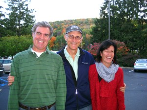 Tony, Frank and Lisa, outside the Hampton Inn, Clarks Summit, with the fall colors in the background.