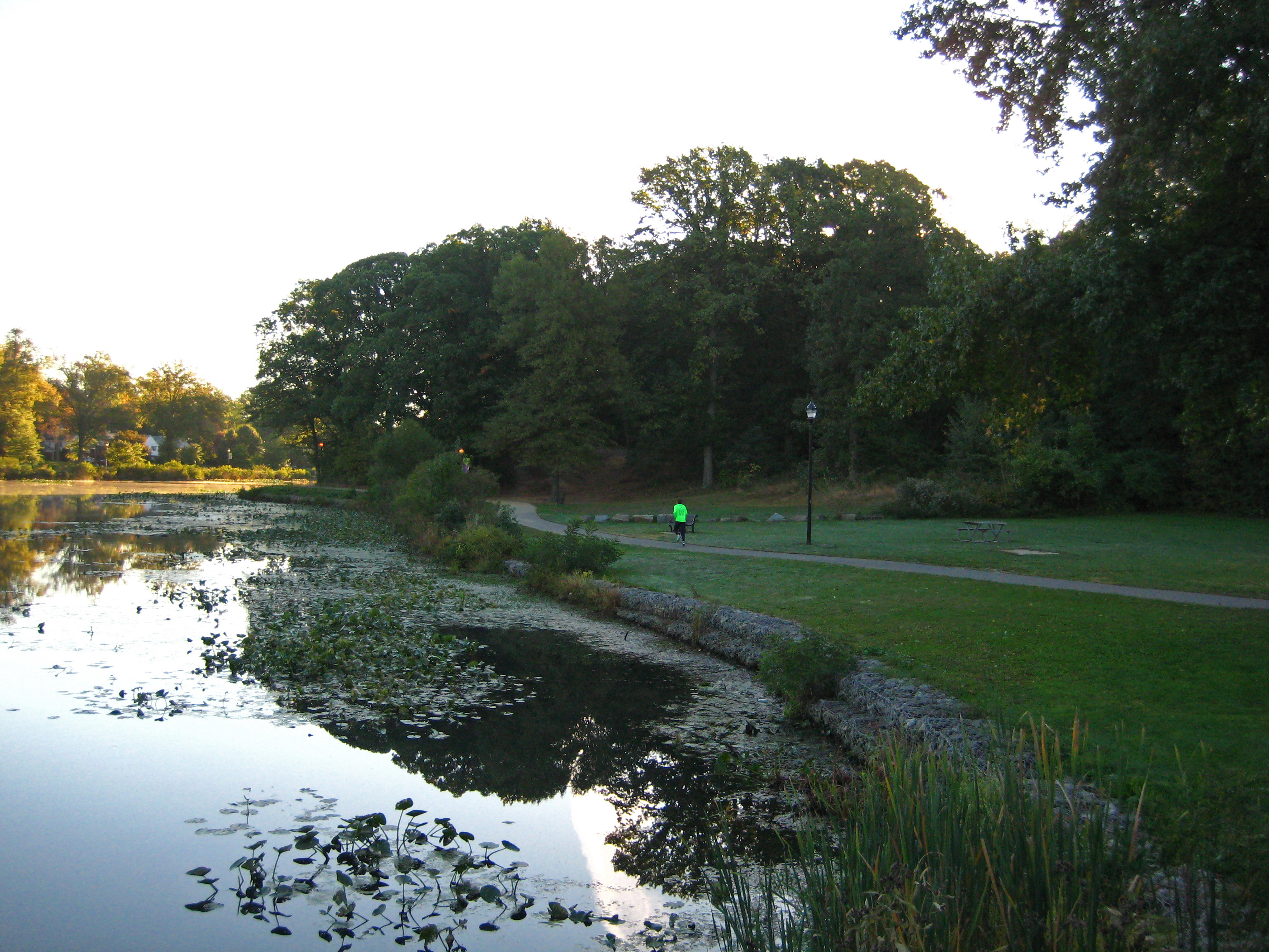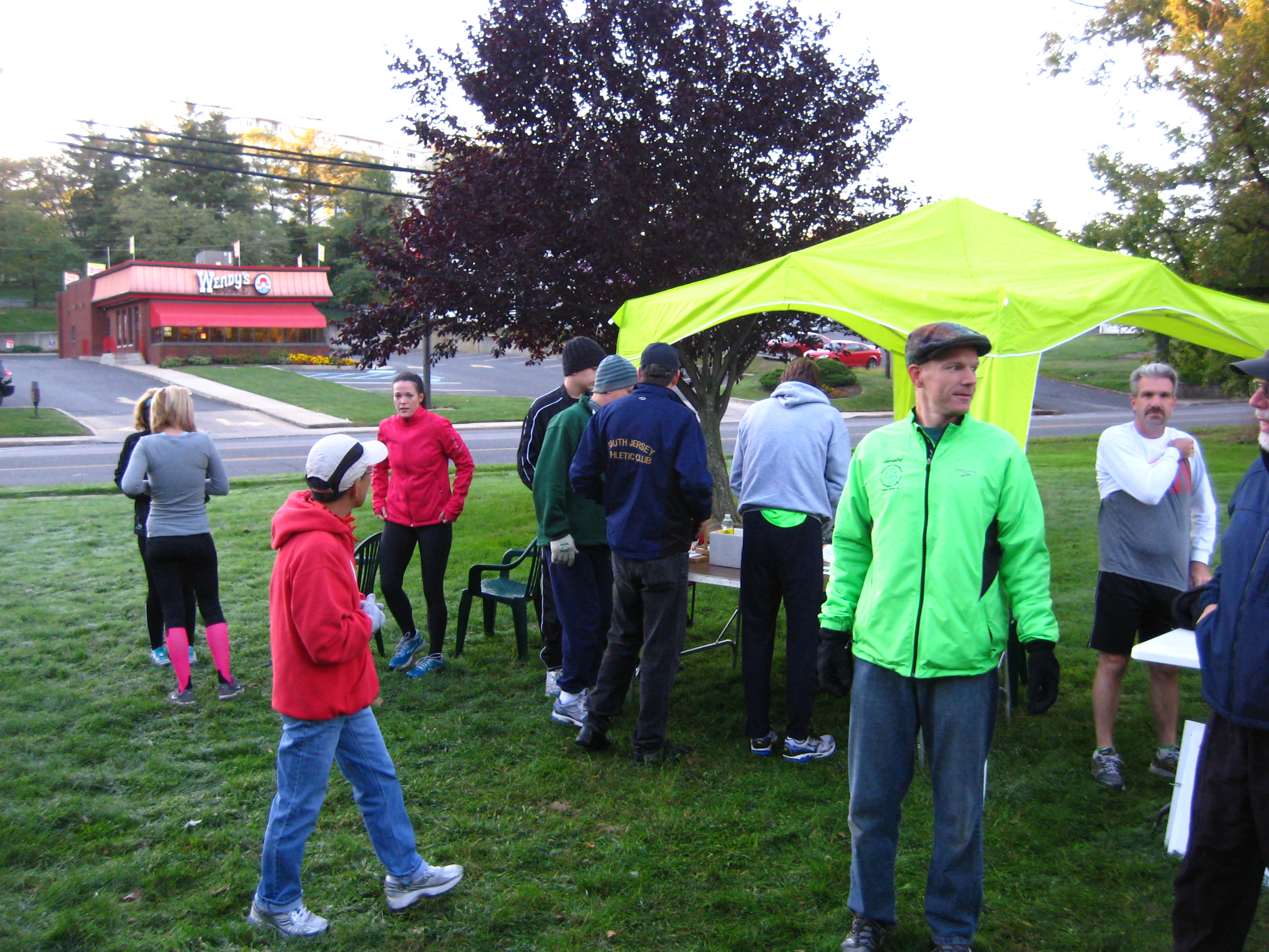 The next morning, I went for a really slow 3 mile run with Ivan, which was a good way to keep the muscles warm and working. The weather, which had been predicted to be rain the whole weekend, was starting to look less monsoon-like, and more like scattered showers, especially on Sunday. After some pancakes, we left and headed up the last half hour of driving to Scranton, and to the pre-race expo. This is held in the Scranton High School gym. For a small marathon, which is capped at 3000 entries, the expo was well organized, and had all the necessary elements: a line to pick up your number and T-shirt, commemorative shirts, hats and other Steamtown branded items for sale, vendors for gels, sports drinks, and accessories, and a nice wall-sized map of the course. I got the feeling this was a “runners” marathon, since I saw an awful lot of Boston Marathon jackets on the people picking up numbers, and no-one looked like they were just there to take an easy jog from Forest City to Scranton.