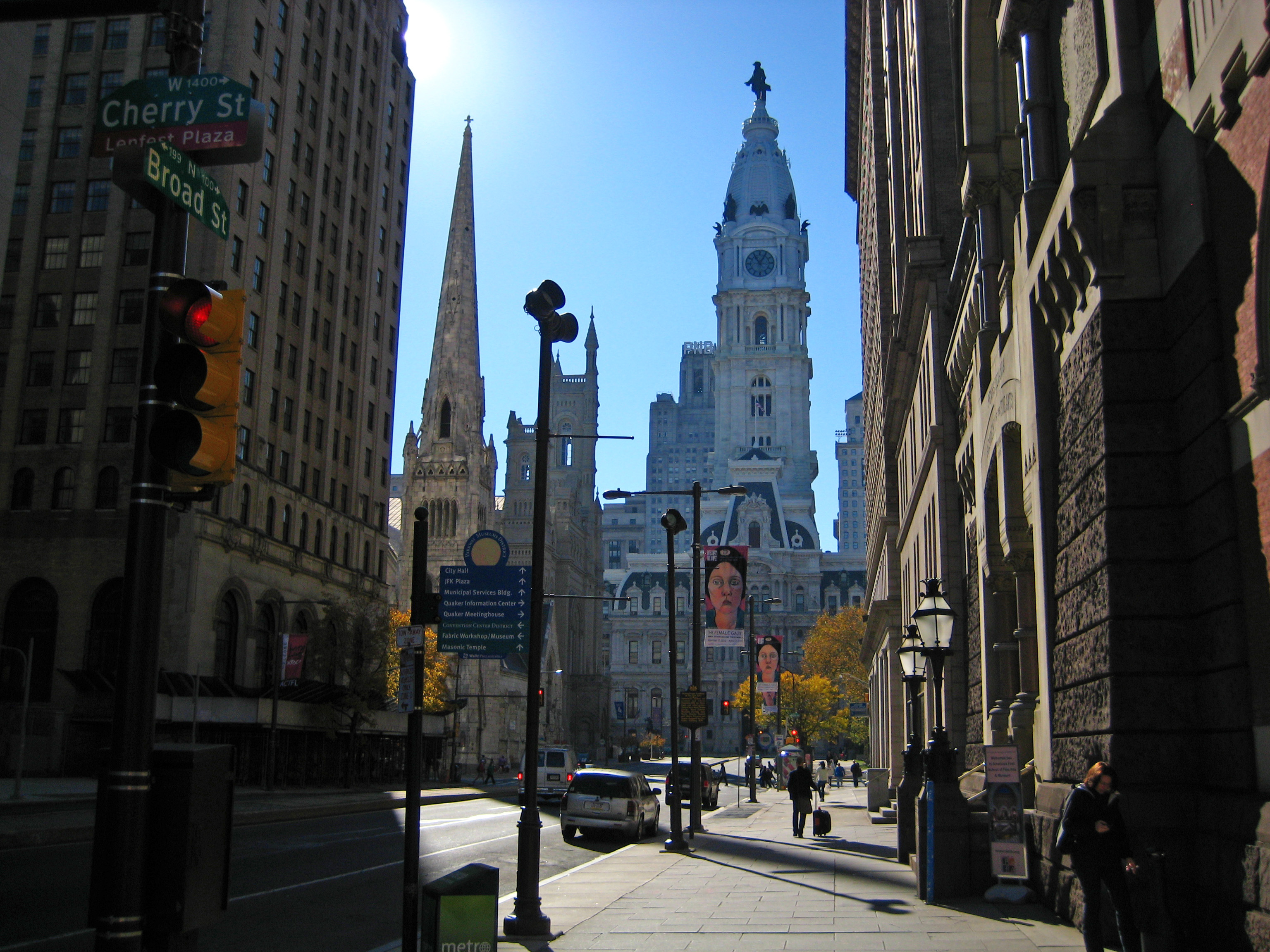 I like the way the old and the new blend together in Philly. The Quaker Meetinghouse has been around since the city was founded, and is still active today. The dramatic Chrysler Building-like tower is One Liberty Place, the first building to tower taller than William Penn’s hat atop city hall. The building to its left is Two Liberty Place, a conglomerate of hotel, condo and commercial space.