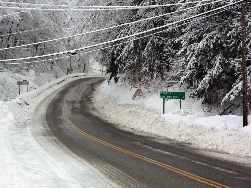 Crossing from New York 7 into Vermont, the route changes to Vermont 9. Having driven four hours, I needed to take a break, get a fill up, a snack, use the rest room, and stretch the legs. I usually stop at a Shell Station in Bennington, at the junction of Vermont 9 and 7. Yes, I would be heading up route 7. You would think Vermont and New York could work out these numbers so that 7 in NY was the same number in VT, but no, they are two recalcitrant states. I got out of my car, and started to pump the gas. In New Jersey, all the gas stations are full service. Only when I leave the state and need a fill up do I actually have to, or get to, pump my own gas. Who doesn’t love the smell of petrol on the hands? Stopping in at the convenience store attached, there was talk among the locals of how bad the driving conditions were in the mountains, the very area I was heading. In Bennington, the streets were dry and it was around thirty eight degrees. When Vermonters mention how bad the roads are, though, one ought to listen. Full of confidence, and desperately wanting to get to see my friends this night, I headed back onto the road and up Vermont 7. I popped open a short can of Pringles to keep me entertained as I headed north. Driving up to Manchester, I finally started to see some snow on the side of the road. It had been pretty much absent up to that point. But still, the road was clear. The real test would come when I reached the turnoff at Manchester, where, instead of heading into town to wisely wait until morning, I bravely ventured east into the Green Mountains.