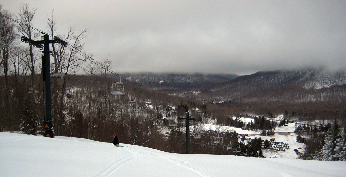 This was my first time at Pico, the smaller sibling of Killington. While smaller, it has some very nice runs, and, as we would find out, there is the possibility of finding some unskied areas to make fresh tracks. We happened to meet up with a local skier, a friend of one in our group, who took us on a tour of the ski area we would never have known about if not for him. We traversed through the trees several runs over, making our own trail, until we came to an unused run served by an ancient lift which was not in service. There we had the pleasure of an untouched slope all to ourselves, with about 12 inches of new snow on it. Skiing it wasn’t easy. It made me look pretty awkward, but the others in the group handled it very nicely. This tour of the mountain brought us to several more unused, or little used, slopes, so we had quite a good day of it.