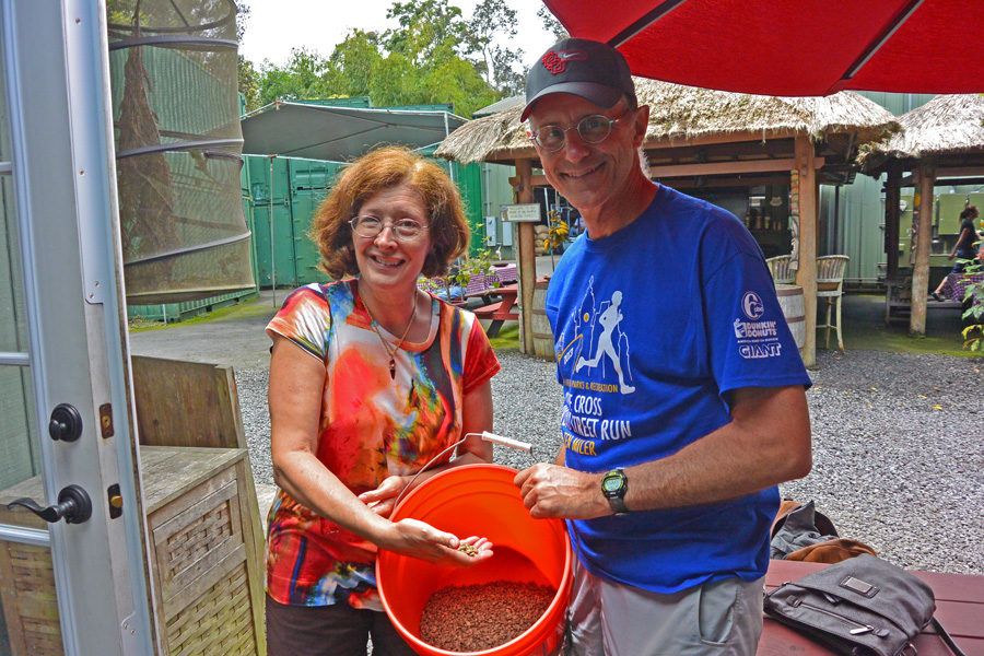 After running, I took a quick shower and joined my wife for breakfast at Honu’s, the hotel restaurant. It is such a temptation to want to fill one’s plate with every tasty item available at hotel breakfast buffets. I held the line at a made-to-order omelet, a mini Belgian waffle with coconut syrup and blueberries, loads of pineapple, and coffee. I may have added a few other items as well…. After breakfast we headed out for the coffee plantation. While there are several dozen on the island which give tours, we chose Mountain Thunder. It had been featured on an episode of “Dirty Jobs”, and it was located high up Mauna Loa. It also grows organic coffee, and seemed like a good bet. We not only took a tour of the coffee growing and roasting operation, we arranged to roast our own organic Kona coffee.
