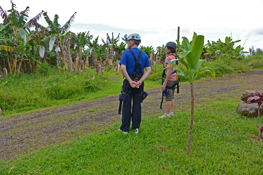 Observing the banana trees along the zip line route.