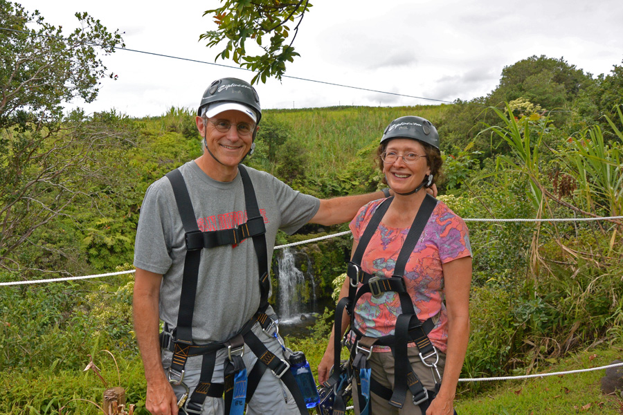 Kat and Frank, clearly enjoying the zip experience!