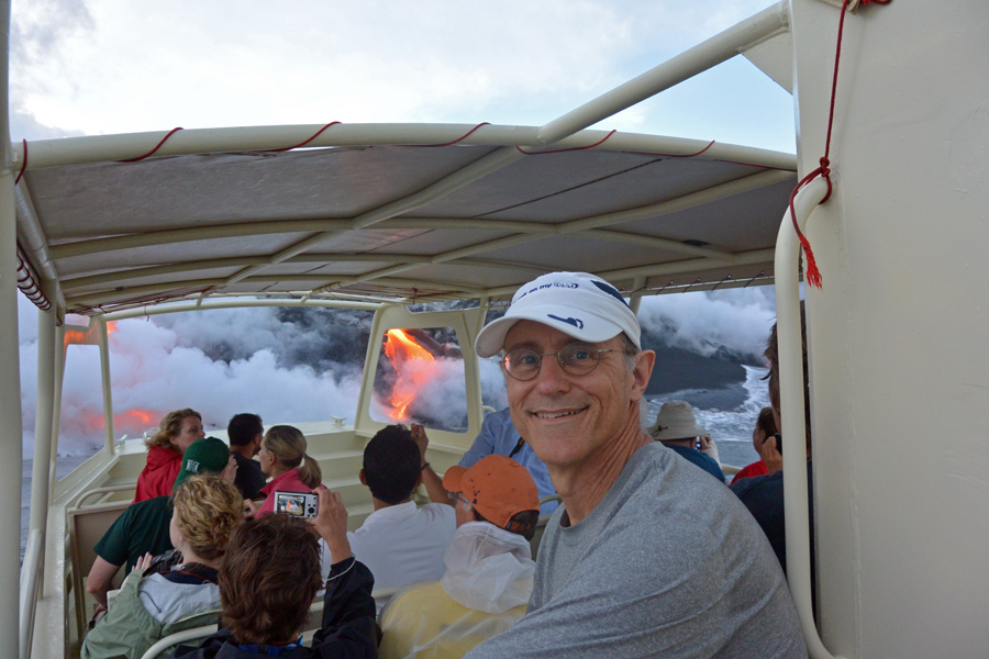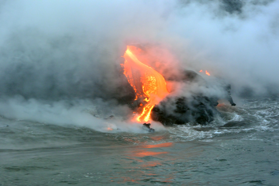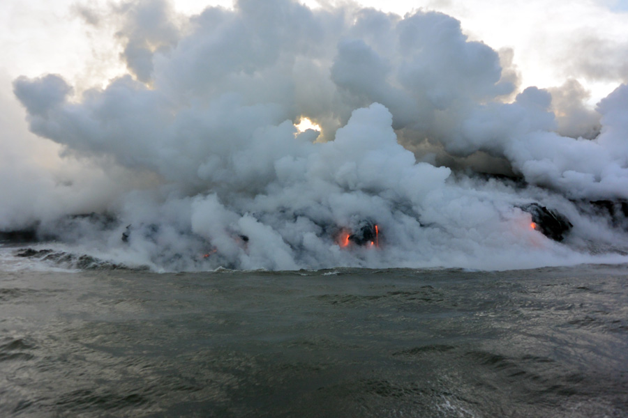 Getting close to the billowing vapor from the lava hitting the ocean water