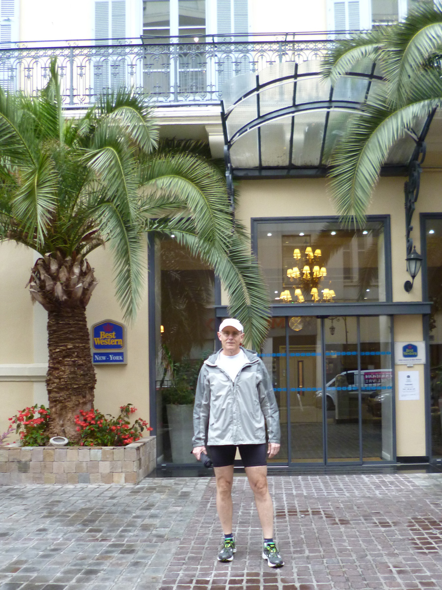 As it turned out, this year’s version fell one day after my birthday, my 60th, so it could not have come at a better moment. Yes, an age bracket change. We booked tickets to Nice planning to arrive on the 25th of April, to give a day for orientation before the race. Never having been to Nice, we did not know the city layout, or where would be best to stay. After a bit of a search on line, and finding out a couple of hotels we tried first were sold out, we reserved a room for three nights in the Best Western Hotel New York Nice, a long name I know, but centrally located and not far from the start of the race.