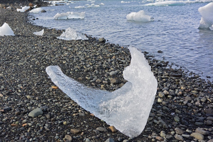 Bits of the glacier had landed on the rocks, forming interesting artistic pieces.