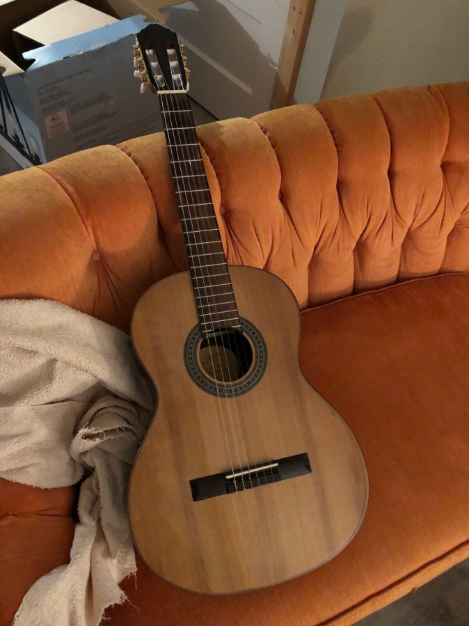 My new guitar. Galen brought his guitar over, and we sat in the living area playing music together.