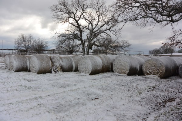 Last November, we planted bulbs amidst the crape myrtle trees we planted earlier, along the north side of the house, and in a bed along our front porch. Some of the bulbs got fooled into sprouting early, with thin, green shoots already 6 inches long. Hopefully, the cold will put a hold on their development, and they will still blossom in true spring.