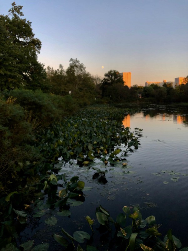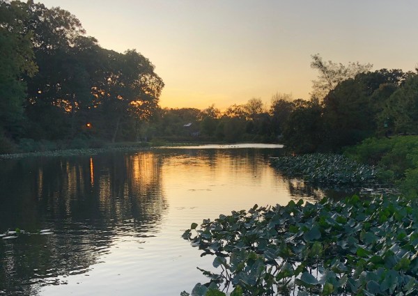 A pleasant aspect of running in autumn, especially in the evening, is that the cicadas are quiet, and the cricket’s songs can be heard.  There are leaves on the ground, and they crunch a bit underfoot.  Other than the padding of my shoes, and the occasional chat of walkers as I pass them, it is pretty quiet along this route.  While I am no fan of the hoards of geese we see in our parks, watching them as the pass with a subtle throbbing noise in their “V” formation and alight on the water is a beautiful sight.