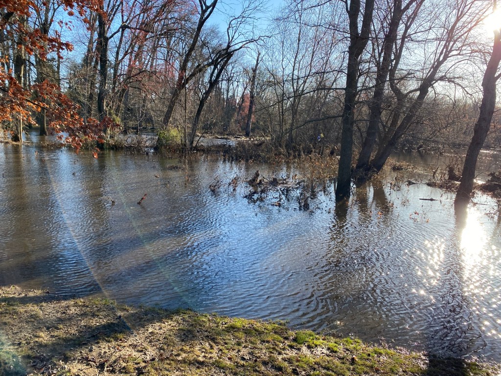 Here is the view from the back of the pack. It is odd to start running with the group Sunday morning only to have them blithely move ahead while I trot a respectful distance to the rear. I am adjusting, though, and there is a calmness to my runs I didn’t have before. I pause every now and then to catch a breather, and even stop to take a photo, as I did last Sunday, a day after heavy rains, when our local park was flooded.